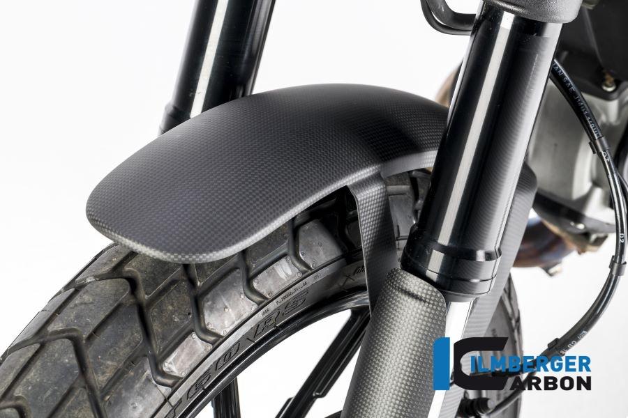 Ducati Scrambler Carbon Front Fender Features Material: High-quality prepreg carbon Finish: Matte finish Installation: Easy installation on original mounting points Advantages Durability: Superior protection and scratch resistance through clear plastic coating Aesthetics: Enhanced three-dimensional effect of the carbon structure Compatibility Fits Ducati Scrambler 800 models: Icon Add a touch of elegance and protection to your Ducati Scrambler with this